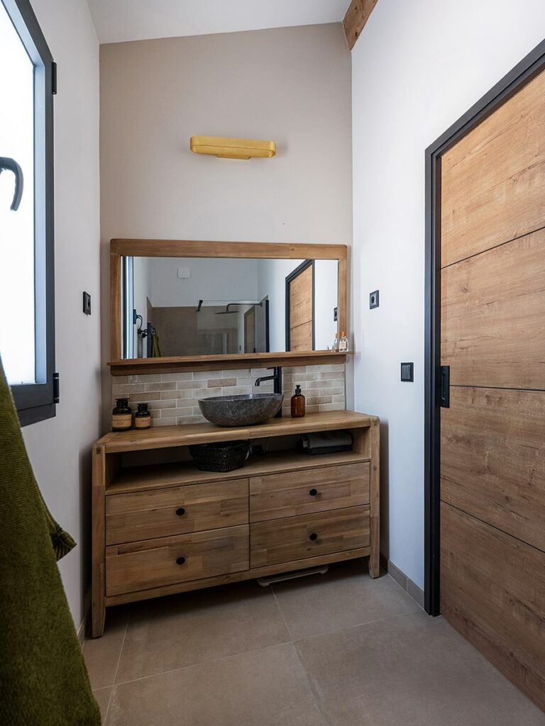 Les poutres apparentes ainsi que les plafonds en rampant confèrent également un espace agréable et chaleureux dans les chambres et salles de bain.