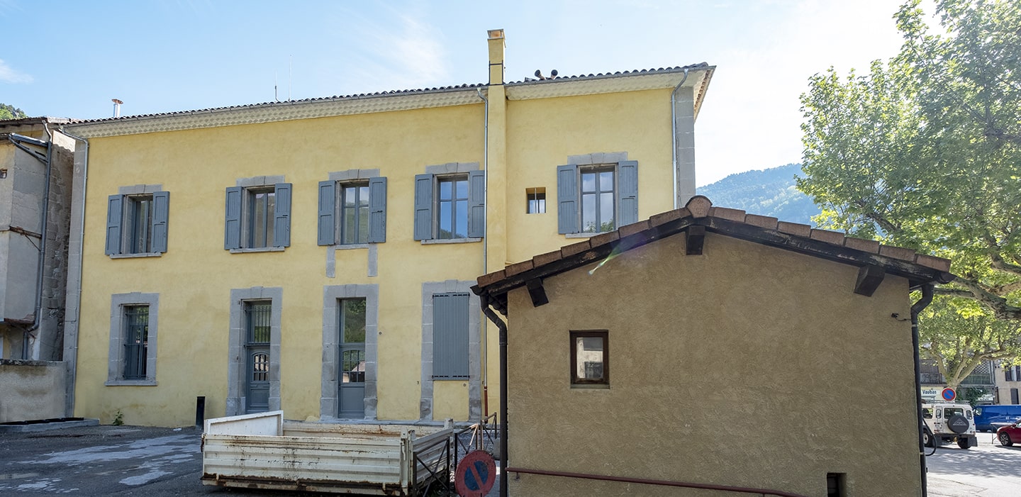La rénovation de la Mairie d’Annot a consisté en une isolation thermique intérieure des murs et de la toiture, la réorganisation des 300m² sur 2 niveaux comprenant la Salle de Mariage, les bureaux d’accueil, les bureaux administratifs, les sanitaires/cuisine, les locaux associatifs, les salles de réunion, les bureaux de la Direction et des élus. Le ravalement de façade a également été réalisé en profondeur avec purge totale de l’ancien revêtement et réalisation d’un enduit à la chaux traditionnelle. La façade principale a également été travaillée avec l’installation d’une horloge et d’une écriture réalisée en technique traditionnelle.